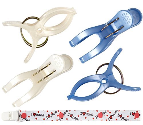Protect your little one?s from the sun and overheating when they are out anything you need can be attached to the stroller by baby voice clips;Wider than others, these pegs fit to most stroller frames, car seats, canopies, hood, excellent strength of clips;No lost properties, our clips secure no more flying swaddle blankets and you?ll never lose your favorite mother?s necessities;Baby shower gift, best for moms, girls and boys, unique, cool and unisex design of baby voice clips will make you or your friend happy;Cute bonus, free pacifier clip in I love mama, I love papa design, keeps pacifier attached to baby's clothing