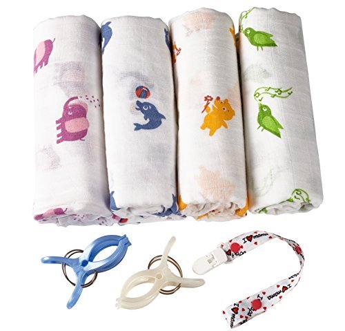 THE SOFTEST *** Our luxurious bamboo fabric is soft, breathable, anti-bacterial and sustainable to protect your little one and the planet.;CHEERFUL *** Designed to make your baby happy. Our animal set comes in a four pack with bird, dolphin, elephant and bear designs. Great baby shower gift.;PERFECT SIZE *** With 47x47 inches you get more fabric to wrap your newborn up nice and tight in just a few seconds.;BETTER VALUE *** Use these swaddling blankets as a stroller cover, nursing cover, changing pad cover, burp cloth, diaper pad, tummy time blanket and more! Plus you will get for free a 30-page baby sleeping guide e-book, two pretty stroller clips and a lovely pacifier clip.;DISCOUNT *** Save up to 16% when buying more BabyVoice products. See your discount codes bellow under Special Offers. Add to Cart now and enjoy!