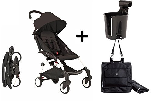 BabyZen YoYo Stroller - White/Black + Babyzen Premium YoYo Travel Bag, Black + BabyZen YOYO Cup Holder Complete Package by Baby Zen