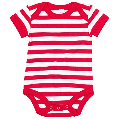 (ベイビーバグズ) Babybugz ベビー・赤ちゃん用 ボーダー しましま 半袖ボディースーツ ロンパース スリープスーツ ベビー肌着 パジャマ (6-12ヶ月) (レッド/ウォッシュドホワイト)