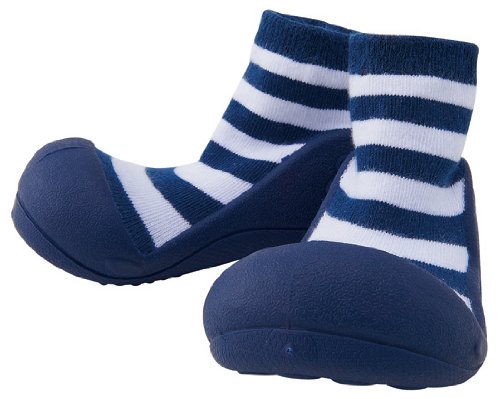 よちよち歩きの赤ちゃんをサポート 靴下より安全で、靴よりも軽い、優れもののトレーニングシューズ。生体力学に基づき、赤ちゃんの足の形や動きを研究して作られた安心設計。靴下より保護力があって滑らず安全で、靴よりも軽いのでとっても歩きやすい 主な用途はルームシューズですが底がラバーなので簡易の外履きとしてもご使用頂けます。(底に通気のための穴が空いていますので水気のある場所でのご使用はお控え下さい。)汚れたら洗濯機で洗えるので衛生的 ギフトに最適なパーケージ入りで出産祝いにも喜ばれますよ。