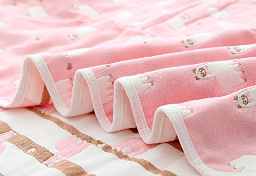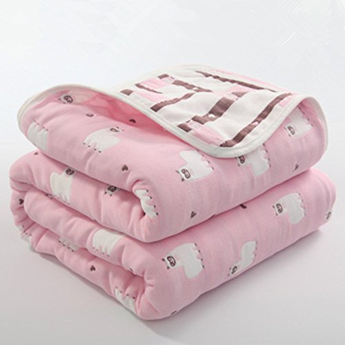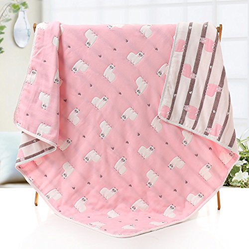 BABYHOOD コトン100% 6層 赤ちゃん おくるみ ベビーブランケット 入浴用 ベビータオル ふわふわ暖かい 柔らかい肌触り 毛布(ピンク羊驼)