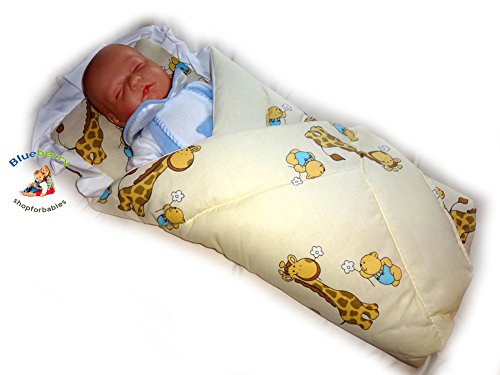 BlueberryShop Classic with Pillow Swaddle Wrap Blanket Sleeping Bag for Newborn, baby shower GIFT 100% Cotton, 0-3m ( 0-3m ) ( 78 x 78 cm ) Cream Giraffe