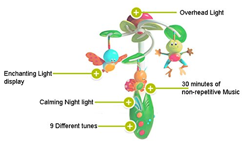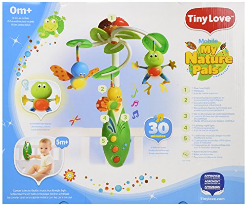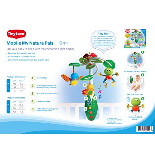 The Tiny Love My Nature Pals Mobile is a captivating nature inspired mobile, there is 30 minutes of continuous music and the adorable figures and soft lights create unique movement. The mobile includes a overhead light, calming night light, 3 different musical categories with 9 different tunes.For more information regarding the extensive range available from East Coast NurseryWhich includes Nursery Furniture, Mattresses, Changing Mats, Silver Cloud Bedding, Fisher Price and Sassy please visit our website at www.eastcoastnursery.co.uk