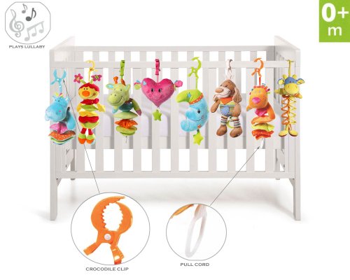 The background melody of this very cute cot toy creates a magical atmosphere. The smiling Red Ladybug, gives your child comfort and the melody induces relaxation and sleep. As well as being soothing it also develops the child's senses of sight and sound and teaches your baby to distinguish different sounds.