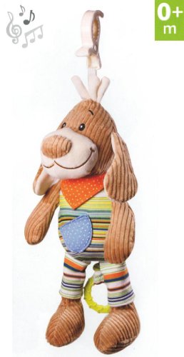 Musical Hanging Animal Toy with Pull Cord -- For Pram, Strollers, Cots, Cribs, Car Seats, Booster Seats -- Design: DOG