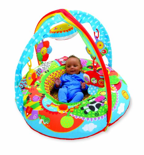 A soft multi-sensory environment with a fun farm scene around the Playnest and the Gym as the sky above. Playnest is a fabric covered inflatable ring that supports baby during play. There are textures and sounds to explore in the 5 Gym toys and the 8 activities around the Playnest. Both hand/eye coordination and manipulative skills are encouraged and Playnest & Gym will play an important role in baby's physical and play development. The Playnest/Gym covers and soft toys are machine washable.