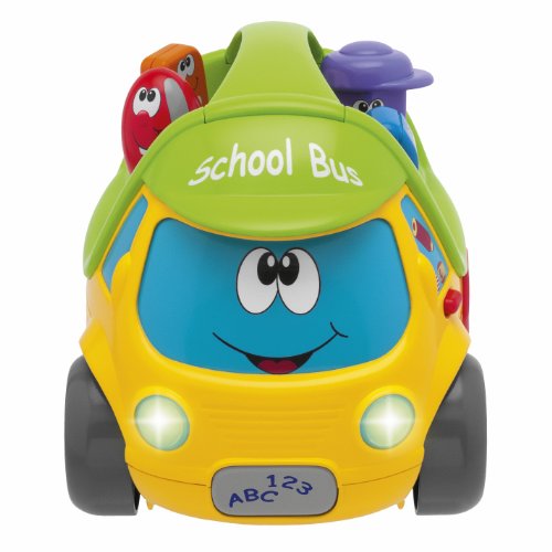 The Talking School Bus is an entertaining interactive talking vehicle with 4 passengers; Tom the pencil, Bob the eraser, Ricky the ruler and Jimmy the Pen. It has 3 play modes: 1. Music: lots of lively tunes and songs that invite toddlers to play with the school bus and the characters, 2. Learning: amusing songs and phrases that teach toddlers numbers, the letters of the alphabet and other related contents, 3. Quiz: entertaing riddles and quiz questions on colours, shapes and the functions of school materials. A special sound effect is activated if the answer is wrong. If the answer is correct, toddlers will hear the voice of the 4 characters.