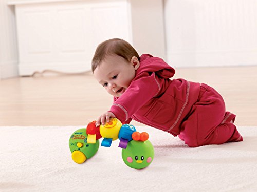 This cute caterpillar friend will encourage your little one to wiggle their way to early learning fun! The Roll and Wiggle Caterpillar has lots of manipulative features including twisting buttons and tactile tags that help develop fine motor skills. The Roll and Wiggle Caterpillar introduces the alphabet, counting, simple shapes, and colours with fun phrases, melodies, and sing-along songs.