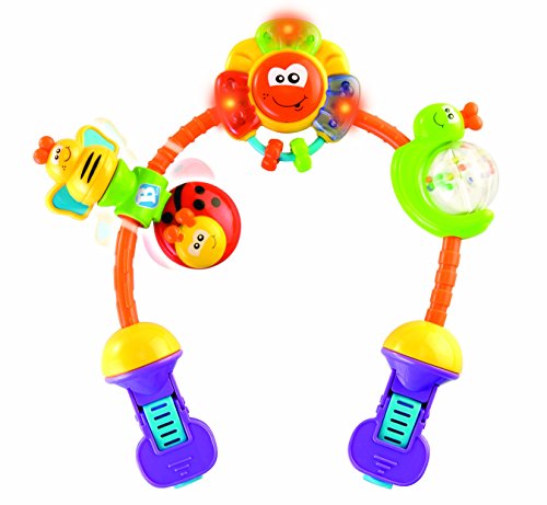 A safe simple to attach stroller toy including rattles, spinners and music and light.