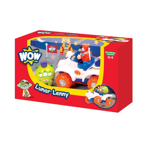My name is Lunar Lenny and I?m WOW Toys? very own space buggy! Times have changed since WOW first began, so much so that WOW has deployed me to travel space and search for extra-terrestrial life forms on the moon and further afield. I spend my days traveling through space with my captain, Buzz, and alien friend, Ali.I have an unlimited supply of cheese up here so I never go hungry, and when I get bored I can shout for my good friend, Ronnie Rocket, to play some space games. Known as: Lunar Likes: Apollo 13 the movie and moon craters Dislikes: Black holes and meteor showers Likes to hang with: Bertie, Ralph and RonnieWOW Toys don't require any batteries and still have amazing functions and features to discover. WOW only use high grade materials and every toy is rigorously tested to make sure it is durable and safe.