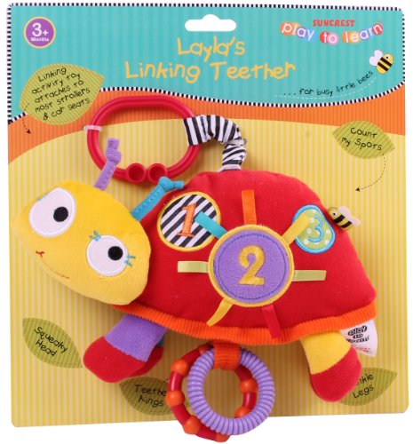 Play to Learn present Layla the beautiful ladybird linking soft toy with bright colours and fun textures that easily attaches to most stroller and car seats. The spots and numbers help your little one to learn while the squeaker, crinkle and teether activities provide the fun.Layla is made from 74% Polyester and 26% Cotton and the filling is 100% Polyester.Layla the Ladybird also features a fun activity book with a Squeaker, Crinkle Texture, Mirror, Ribbons and a Worm Toy too! A perfect present for any new arrival.