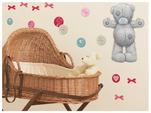 Decorate walls and furniture with lovable Tatty Teddy room stickers. This traditional collection includes 2 identical sheets, each with a huge, peel and stick, Tatty Teddy sticker, plus bows and patterned dot accessory stickers.This much loved character will look gorgeous above a cot or bed, or to add some fun to blank walls above a chest of drawers or between furniture. Tatty Teddy Room sticker designs complement plain white or Tatty Teddy themed bedding.Simply peel each sticker from the sheet and apply to your chosen surface. Decorating couldn?t be easier with these high quality, pre-cut vinyl stickers. And, if you decide you want to move them somewhere else, or even put them in another room, just peel and reapply.Tatty Teddy wall stickers are repositionable and removable, splash proof and washable. A quick and easy solution for creating a welcoming space for your baby or young child.
