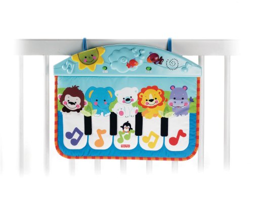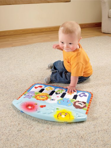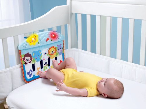 As baby stretches and kicks at the piano keys, gross motor skills are enhanced. view larger