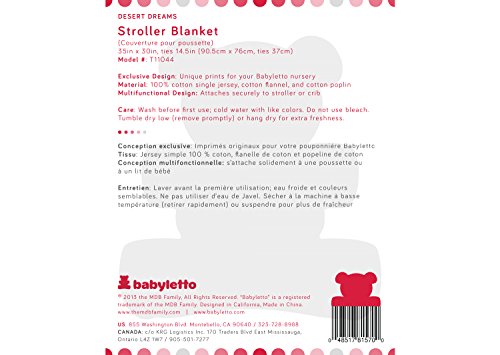 Exclusive Design: Unique prints for your modern nursery;Multifunctional Design: Ties securely to stroller or baby carrier;Safety: Tested to voluntary ASTM standards;Material: 100% cotton single jersey, cotton flannel, and cotton poplin; 2 Year Warranty; Dimensions: 35L x 30W, ties 14.5L;Care: Wash before first use; cold water with like colors; Do not use bleach; Tumble dry low (remove promptly) or hang dry for freshness;Multifunctional design: ties securely to stroller or baby carrier; ties 14.5l;100% cotton single jersey, cotton flannel, and cotton poplin;Care: wash before first use; cold water with like colors. Do not use bleach. Tumble dry low (remove promptly) or hang dry for freshness