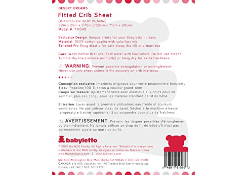 Exclusive Design: Unique prints for your modern nursery;Tailored Fit: Snug elastic for safe sleep, fits standard US crib mattresses;Safety: Tested to voluntary ASTM standards;Material: 100% cotton poplin with colorfast ink; 2 Year Warranty; Dimensions: 52L x 28W x 7.75H;Care: Wash before first use; cold water with like colors; Do not use bleach; Tumble dry low (remove promptly) or hang dry for freshness