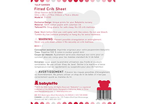 Exclusive Design: Unique prints for your modern nursery;Tailored Fit: Snug elastic for safe sleep, fits standard US crib mattresses;Safety: Tested to voluntary ASTM standards;Material: 100% cotton poplin with colorfast ink; 2 Year Warranty; Dimensions: 52L x 28W x 7.75H;Care: Wash before first use; cold water with like colors; Do not use bleach; Tumble dry low (remove promptly) or hang dry for freshness