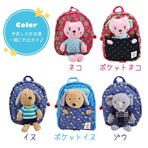 ぬいぐるみ付 リュックサック ベビー用 カバン 男の子 女の子 通園 遠足 おでかけ バックパック 幼稚園 迷子防止 ハーネス付 リュック (いぬポケット)