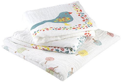 Contains 3 muslins: 1 muslin 80 X 80 cm and 2 muslins 60 X 60 cm;Ultra soft: 100% cotton;Multi-purposes: swaddling, shielding while breastfeeding, baby blanket...;5 stylish models created by mums for mums;Machine washable
