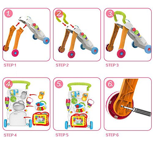 Babynice ベビー歩行器 手押し車 シンプルウォーカー 多機能 音楽付き 赤ちゃん 幼児 知育 (マルチカラー, フリーサイズ)