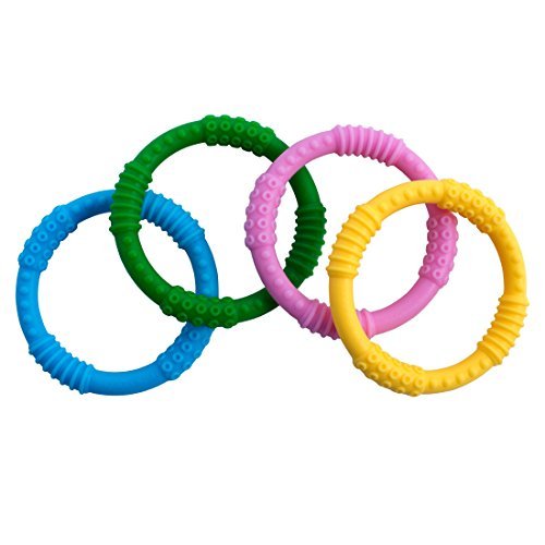 - Babynow Teether Baby Toys 4 Colour Teething Rings to Reduce Pain Sooth and Massage Baby Gums Certified BPA Free