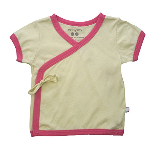Babysoy半袖キモノTシャツは前面に便利なスナップボタンがあり簡単に着られ、内面のスナップボタンが着崩れを防ぎます。リボンは装飾です。大豆繊維由来の軽量アズロンが、その多孔構造により暑い日でも究極の快適性を提供します。この通気性が赤ちゃんの熱を大幅に低減します。Babysoyは最高品質の生地のみを使用することで、製品が赤ちゃんにとって柔らかで快適であることを保証しています。