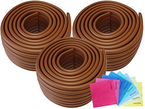 Babystity 危険防止 コーナー ガード クッション 両面テープ クリーニングクロス 平面タイプ (2m×3個, 茶)