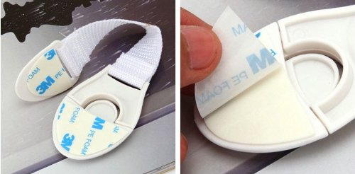 - 家具の扉、冷蔵庫、引き出しやドアなどのいたずら防止ストッパー。