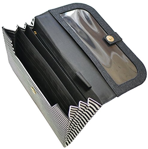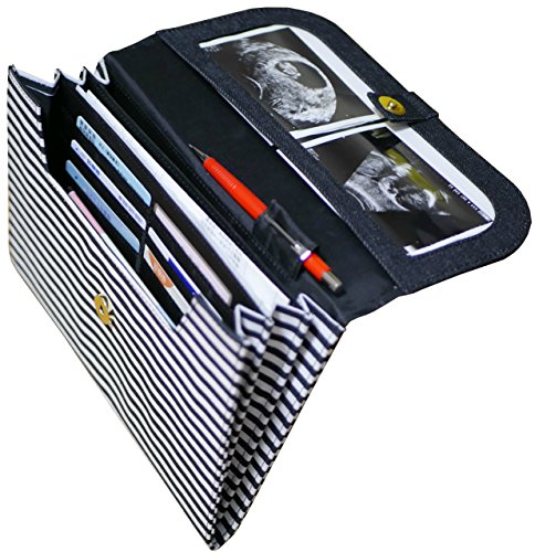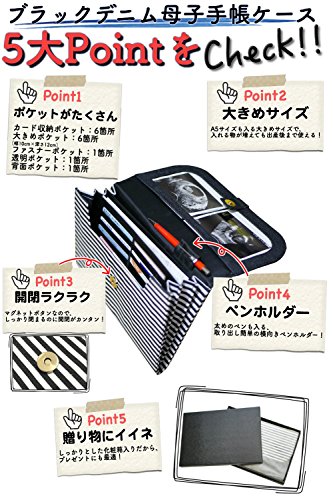 【Babystity】母子手帳ケース ジャバラ式 ブラックデニム ボーダー柄 化粧箱入り (デニム×ボーダー)
