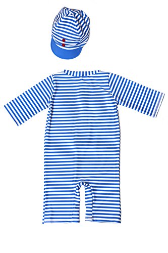【Babystity】 子供 ベビー 男の子 ボーダー柄水着 帽子 2点セット (70cm-80cm)