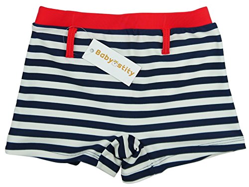 【Babystity】 子供 ベビー 男の子 ボーダー柄 水着 帽子 2点セット (100cm)