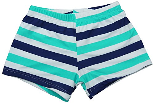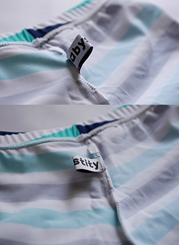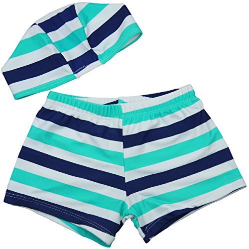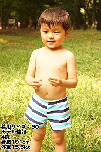 【Babystity】 子供 ベビー 男の子 マルチボーダー 水着 帽子 2点セット 90 100 110 (青90)