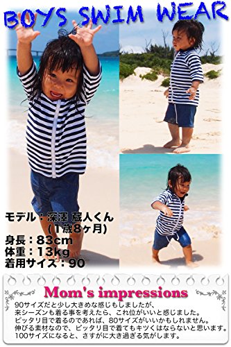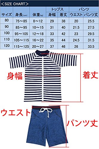 - ✅【 今最も人気のキッズ水着 】 ボーダーのラッシュガードと、デニムプリント柄パンツと帽子がセットになったスイムウェア。生地はUPF50+でバッチリ紫外線を防ぐので、日焼けが心配な海や野外のプールでも思う存分遊べます。サイズは80から120cmまで5サイズ用意しています。赤ちゃんから、6歳くらいの男の子まで幅くお選び頂けます。洗濯タグには、NAME欄が付いているので、保育園や幼稚園で使用する時でも、カンタンに名前の記入が出来ます。 .