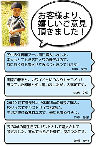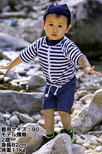 【Babystity】 男の子 水着 UPF50+ ボーダー柄 ラッシュガード 帽子 デニム柄 パンツ 80〜120cm(3点セット 100cm)