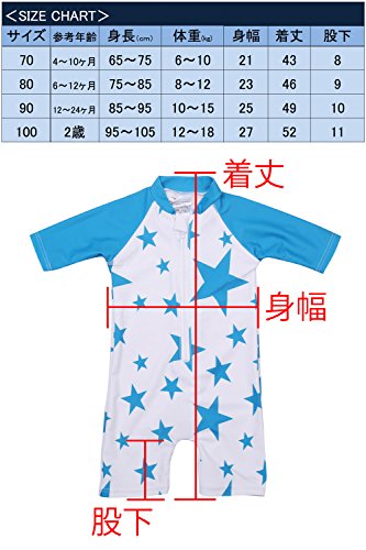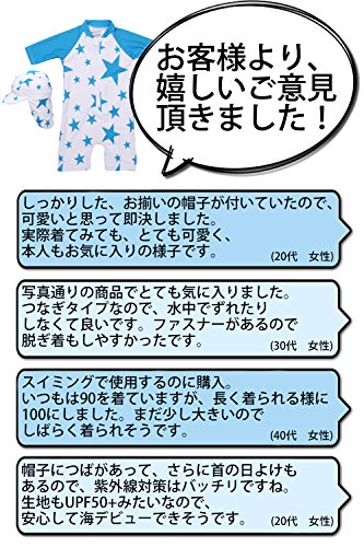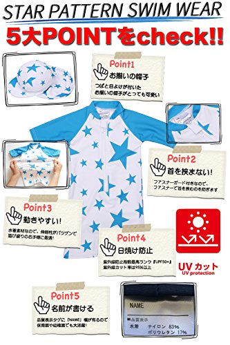 【Babystity】 水着 男の子 子供 ベビー 星柄 UPF50+ 帽子付き (ブルー, 90)