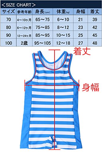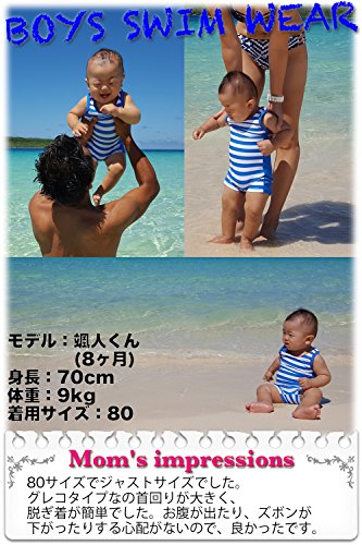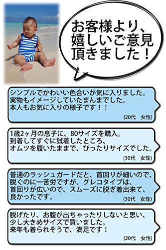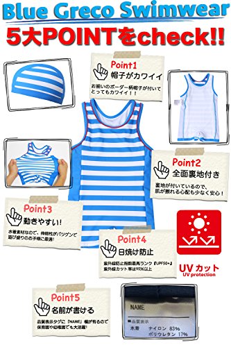 【Babystity】 ベビー 水着 UPF50+ グレコタイプ ボーダー柄 帽子付き 2点セット 男の子 赤ちゃん 70〜100cm (90)