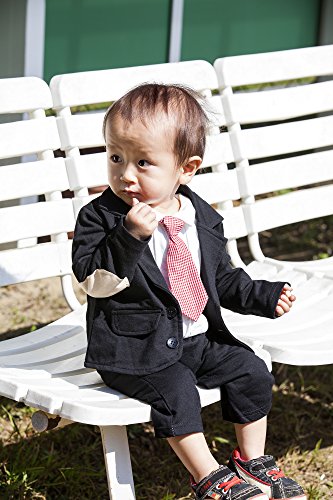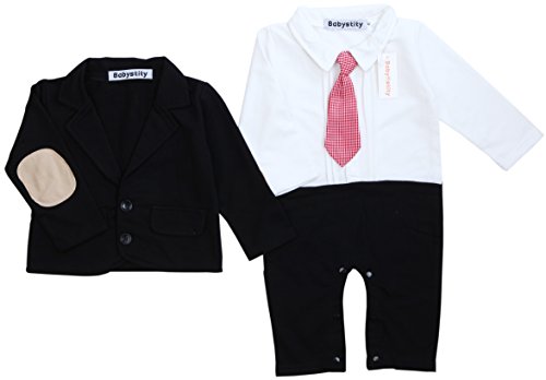 【Babystity】ベビー フォーマル スーツ風ジャケット付 ロンパース (ブラック90cm)