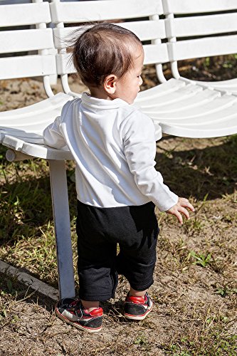 - 白シャツとパンツが一体化したカバーオールは股下スナップ留めでおむつ替えもラク☆