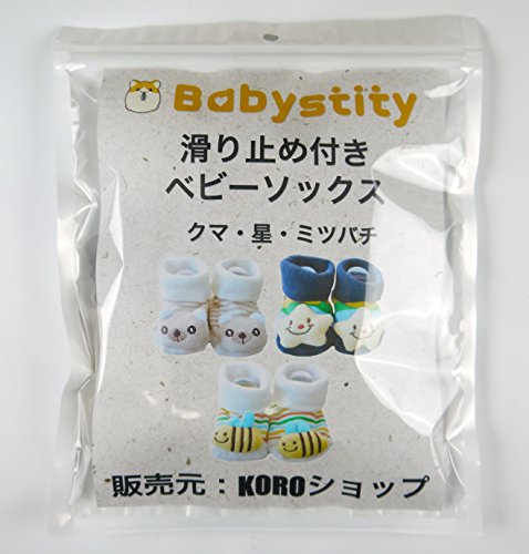 【Babystity】 激かわ! 赤ちゃん 靴下 滑り止め付 くま ほし ハチ 3足セット KR-SOC002