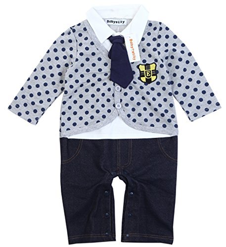 【Babystity】 ベビー 水玉カーディガン風 ネクタイ付き カバーオール (90cm)
