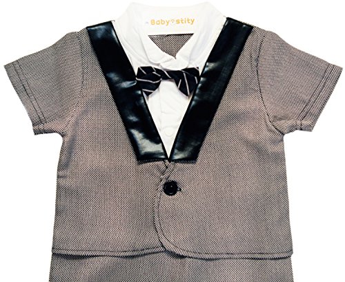 【Babystity】 ベビー 赤ちゃん フォーマル タキシード風 半袖 カバーオール 蝶ネクタイ付き (グレー 80cm)KR-CLO079