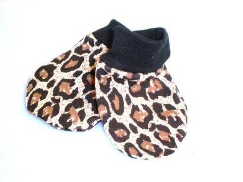 100% cotton leopard print scratch mittens;Made in the UK;Matching items available: Baby blanket, Baby cardigan. sleepsuit/baby grow, Body vest (short sleeve or long sleeve), T shirt, hat, Bib, dribble bib, scratch mittens