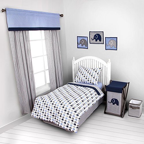 Elephants Blue/Grey 4 pc Toddler Bedding Set by Bacati [並行輸入品]