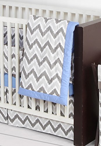 - Bacati - Blue/grey Ikat Chevron Muslin 10 Pc Crib Set with Bumper Pad