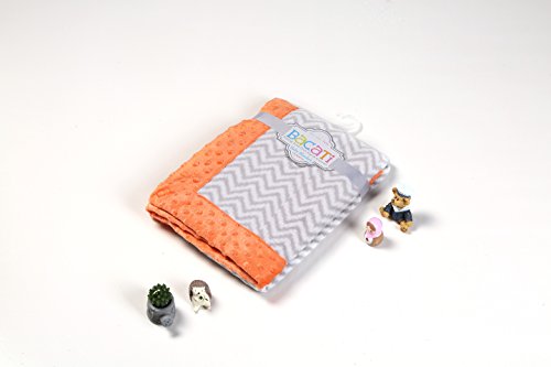 Bacati - Playful Foxs Orange/grey Plush Blanket (Grey Chevron with Orange Border) by Bacati