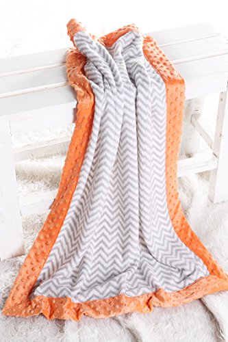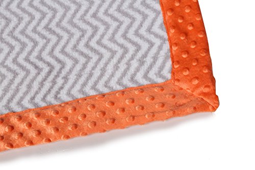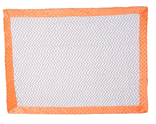- Bacati - Playful Foxs Orange/grey Plush Blanket (Grey Chevron with Orange Border)