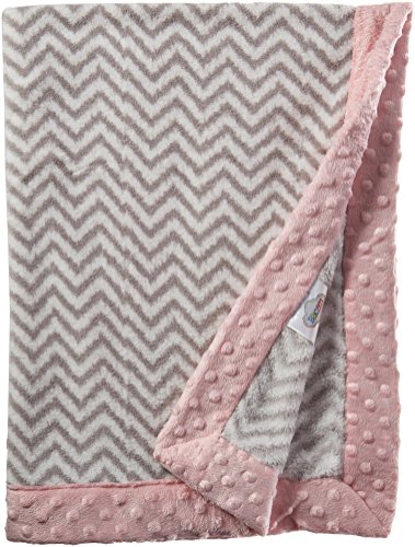 - Bacati Ikat Zigzag Chevron with Border Plush Blanket, Grey/Pink, 30 x 40