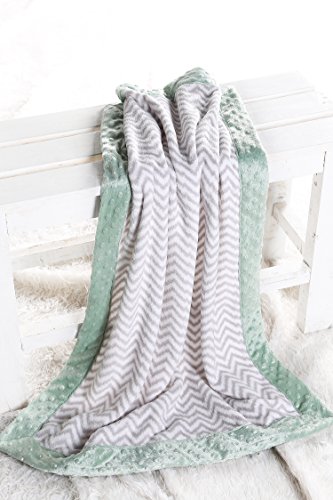 - Bacati - Grey Ikat Chevron with Solid Border Plush Blanket (Grey Chevron/Mint Border)