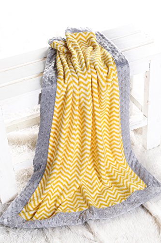 - Bacati - Ikat Chevron with Grey Border Plush Blanket (Yellow Chevron/Grey Border)