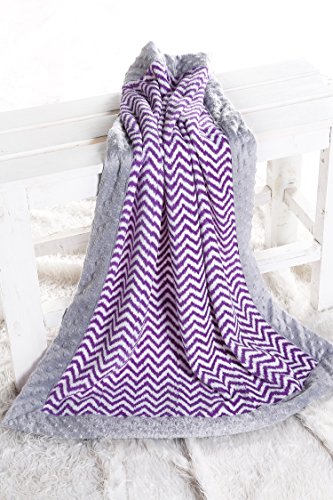 - Bacati - Ikat Chevron with Grey Border Plush Blanket (Purple Chevron/Grey Border)